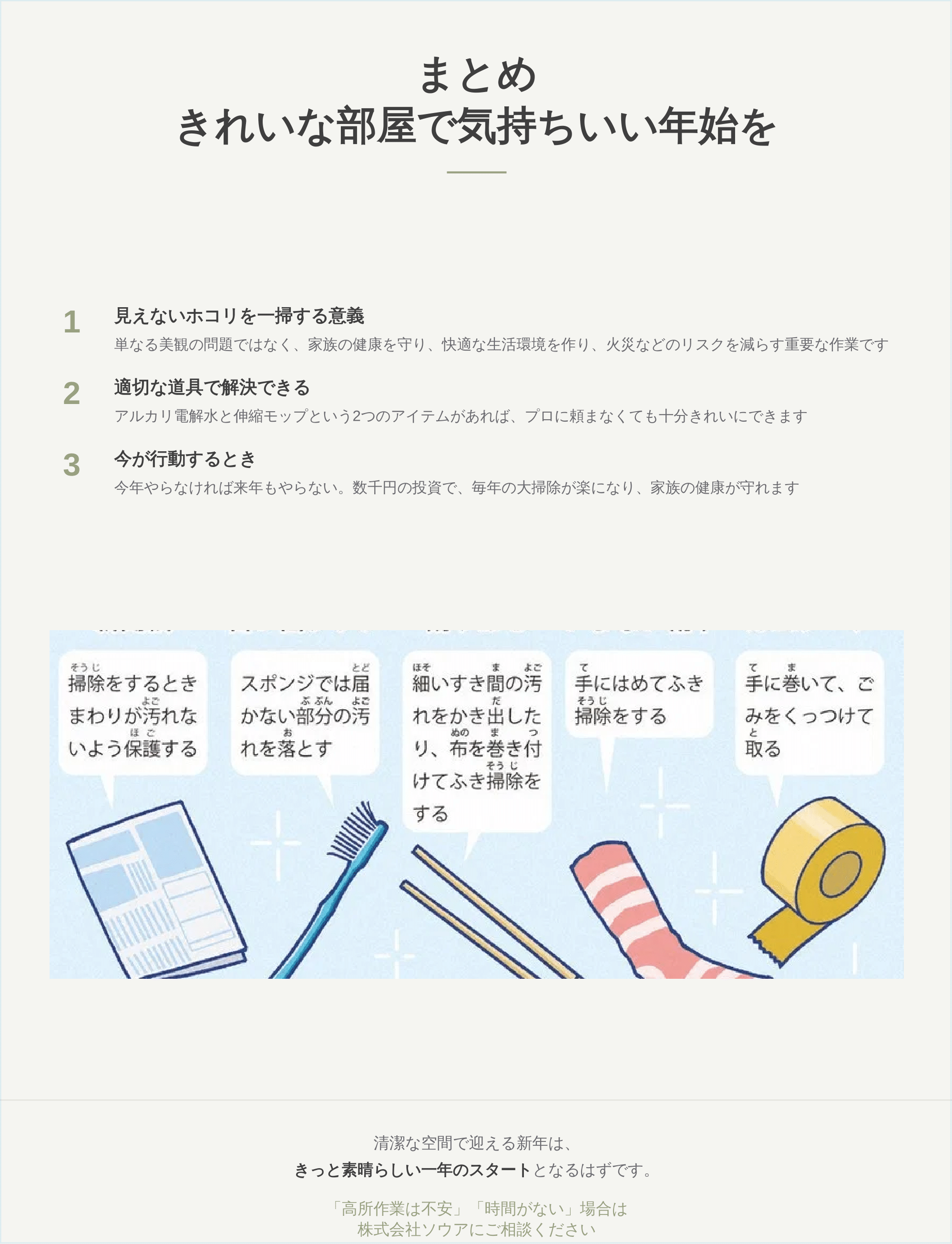 清潔な空間で迎える新年は、きっと素晴らしい一年のスタートとなるはずです。